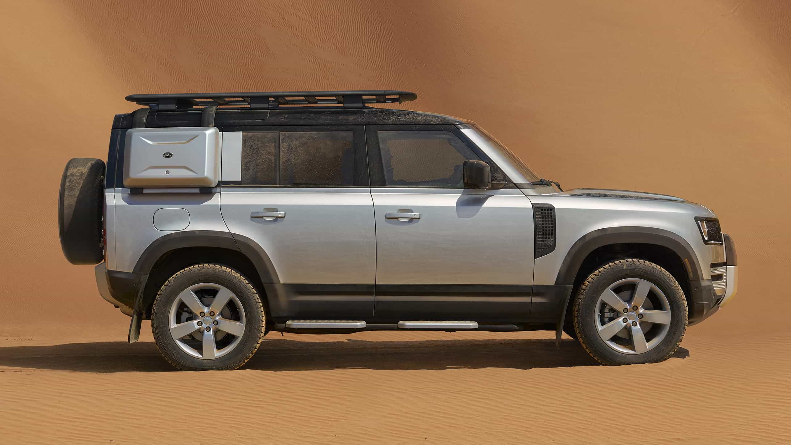 2V případě instalace na model 110 s terénními pneumatikami. Není k dispozici pro modely Defender V8. Dynamické zatížení střechy modelů Defender V8 je 0 kg.